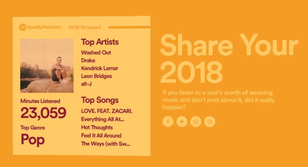 ▲ Spotify 2018 Wrapped 音乐总结而且可能是基于保护用户隐私的考虑,Apple Music 的音乐回忆总结中只罗列了歌曲、专辑和艺人三种数据,不像网易云音乐一样会穿插一些趣味性的数据,后者在去年的年度总结中就加入了「某首歌在某一天被听了最多次」的词条,这种既有特殊性同时也沾点趣味性的数据往往是年度总结中最容易产生话题和共鸣的点睛之笔。如果你正在使用 Apple Music,欢迎在评论区下方晒出你的「2020 音乐回忆」。