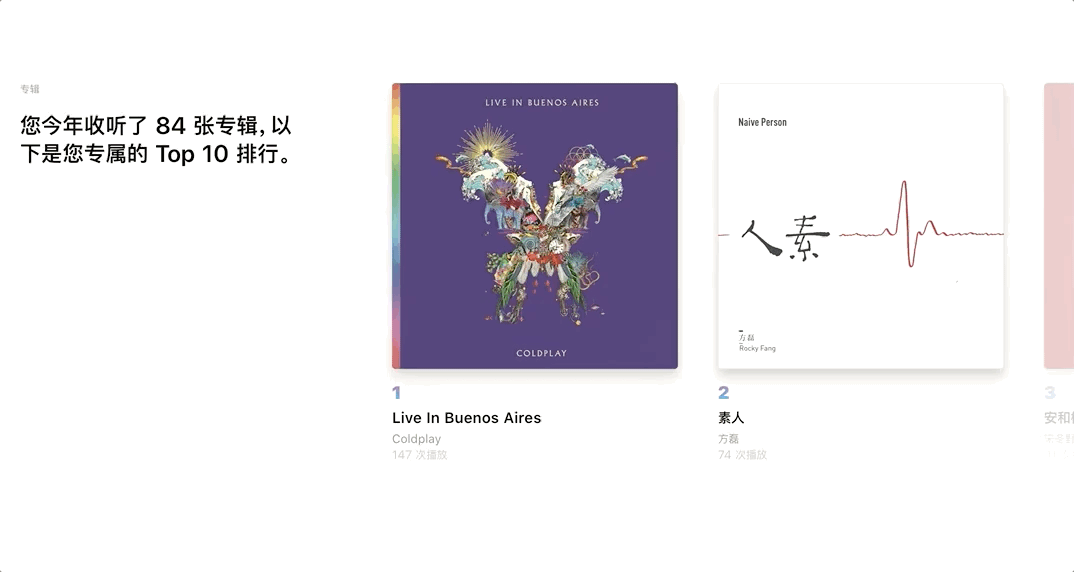 根据苹果的说法,音乐回忆歌单的数据来源于你使用 Apple Music 的听歌历史记录,但对于在「设置」中关闭了「使用听歌历史记录」的设备上播放过的音乐,以及 Apple Music 目录中不可用的音乐都不会被引用,而且歌曲、艺人或专辑需达到最小播放量和聆听时间才会被收录。所以如果你发现自己的「音乐回忆」歌单中缺少自己常听的歌曲的话,不妨看看是哪个步骤出现问题。和其他竞争对手的年度总结相比,Apple Music 的「音乐回忆」年度总结还存在进步空间,例如只有歌单支持分享,罗列的歌手或专辑数据都只能通过手动截图分享,不像 Spotify 或者网易云音乐一样能够生成具有设计感的图片或者页面。