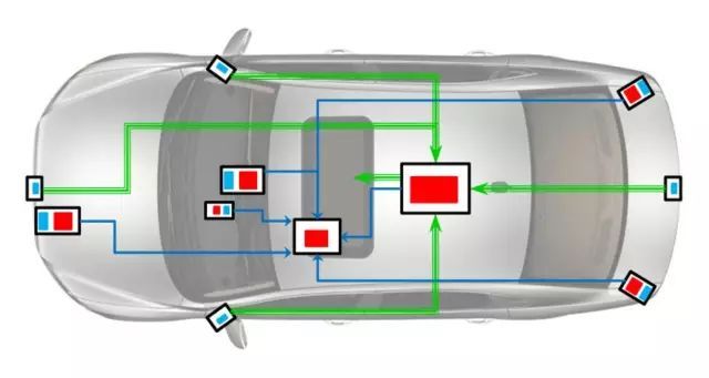 正因如此,我们才有可能将同一传感器应用于不同用途,不过这么做的代价就是在选择最佳模块间通信和处理位置方面受到了限制。以环视为例,这项功能最初的设计目的是,通过将视频传入到中央显示屏上,为驾驶员提供360度视场角。为什么不使用同样的摄像头,并将机器视觉应用到其上呢?后视摄像头可用于实现倒车保护或自动停车,而侧视摄像头可用于实现盲点检测/报警,也包括自动泊车。