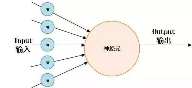 接着,简单介绍下神经网络的基础。生物的大脑是由许多神经细胞组成,同样,模拟大脑的人工神经网络ANN是由许多叫做人工神经细胞(Artificial neuron,也称人工神经原,或人工神经元)的细小结构模块组成。人工神经细胞就像真实神经细胞的一个简化版,如图所示,左边几个蓝色圆中所标字母w代表浮点数,称为权重(weight,或权值,权数)。进入人工神经细胞的每一个input(输入)都与一个权重w相联系,正是这些权重将决定神经网络的整体活跃性。你现在暂时可以设想所有这些权重都被设置到了-1和1之间的一个随机小数。因为权重可正可负,故能对与它关联的输入施加不同的影响,如果权重为正,就会有激发(excitory)作用,权重为负,则会有抑制(inhibitory)作用。当输入信号进入神经细胞时,它们的值将与它们对应的权重相乘,作为图中大圆的输入。大圆的‘核’是一个函数,叫激励函数(activation function),它把所有这些新的、经过权重调整后的输入全部加起来,形成单个的激励值(activation value)。激励值也是一浮点数,且同样可正可负。然后,再根据激励值来产生函数的输出也即神经细胞的输出:如果激励值超过某个阀值(作为例子我们假设阀值为1.0),就会产生一个值为1的信号输出;如果激励值小于阀值1.0,则输出一个0。这是人工神经细胞激励函数的一种最简单的类型。
