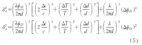对式(3)进行全微分,以斜距相对均方误差δ2=σ2/R2 表示定位精度,可得: