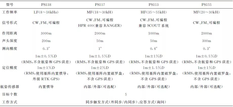嘉兴中科声学科技有限公司(中科院声学所嘉兴工程中心)成立于2007年9月,由中国科学院声学研究所嘉兴工程中心核心技术团队与嘉兴科技城投资公司共同出资创建[22]。其生产的超短基线系统可兼容多种国外同类产品信号体制,主要有PS138、PS117、PS113和PS155这4个型号,并可按要求内置姿态传感器(图16)。其中PS138为与中船重工707所联合研制,集成了惯性导航设备,具体性能如表5所示。