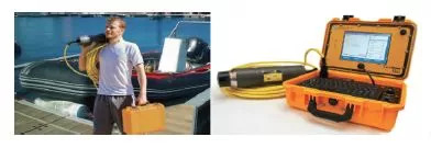 中海达下属的海洋信息技术有限公司推出的基于水声宽带扩频技术和高精度时间同步技术的便携式超短基线水下定位系统,目前有2款型号:iTrack-UB1000(图17)和iTrack-UB3000。该系统融入了高精度差分RTK-GPS定位技术,可满足各种高精度的水下定位导航应用的需求,可同时对5个水下目标进行精确定位,具体性能如表6所示。