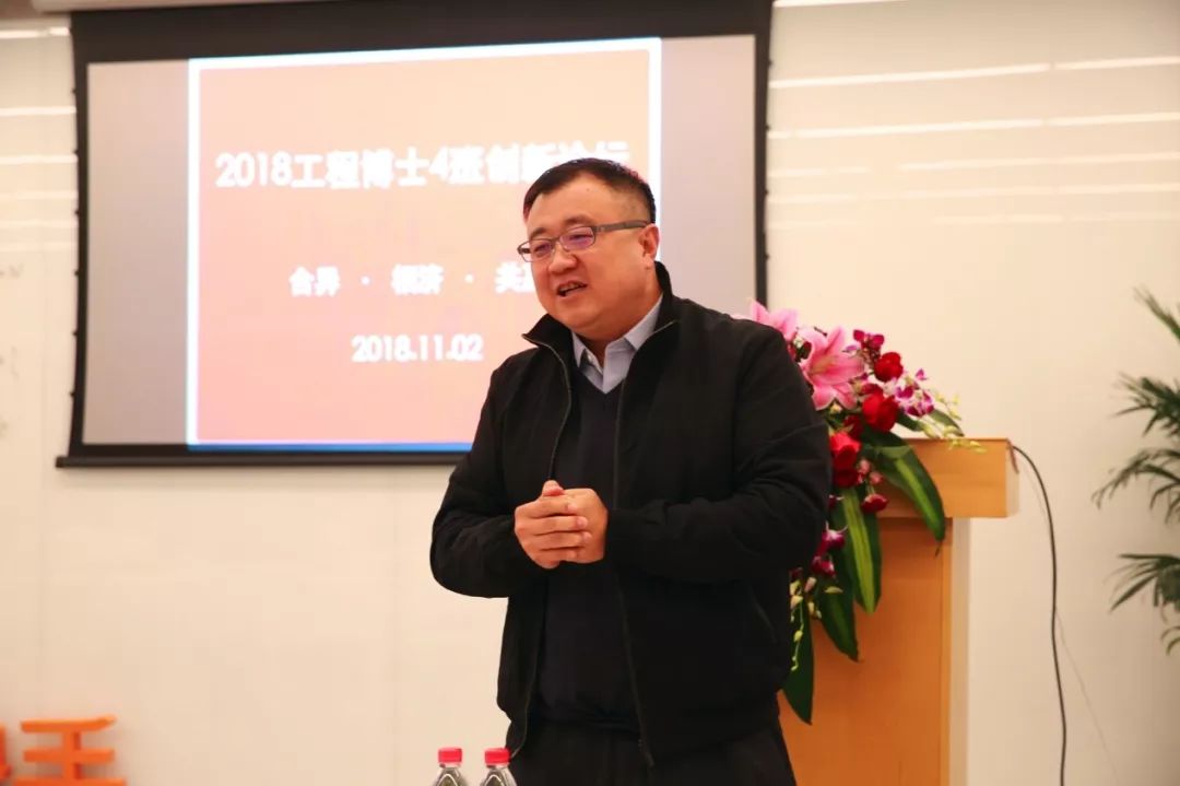 11月2日,清华大学2018级创新领军工程博士4班在北京快手大厦举办首期创新论坛,4班全体同学及兄弟班级、相关行业研究人员共30余人参加,清华大学副校长杨斌、工程物理系党委书记周明胜出席论坛并讲话,工程博士项目中心副主任李鹏辉受项目中心执行主任左剑恶委托分享工程博士培养心得,4班责任教授蔡宁生远程祝贺论坛举办、班主任刘红全程参与辅导。活动中,宿华、汤凯、李峰3位同学分别围绕各自领域热点话题和实践经验作了主题分享,报告精彩、气氛热烈、讨论深入。