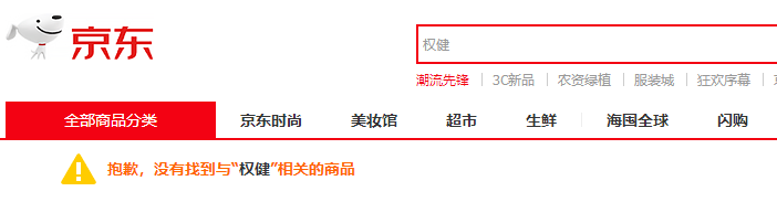 昨晚开始,在唯品会、美团、京东、苏宁等客户端上,输入“权健”均显示无相关内容。唯品会方面表示,从来没卖过权健的商品。苏宁页面上显示:“根据相关法律法规和政策,无法显示相关的商品。京东客服人员称,权健因涉及一篇文章的舆论,已经先行下架了权健的相关商品和店铺。阿里巴巴方面也称,已高度重视,正等待调查结果再采取进一步行动。