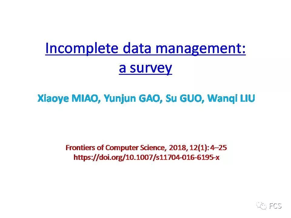 本篇「优青论坛」文章综述了不完整数据的管理,介绍了不完整数据的应用场景,并总结了与不完整数据相关的现存系统。「优青」作者为高云君。