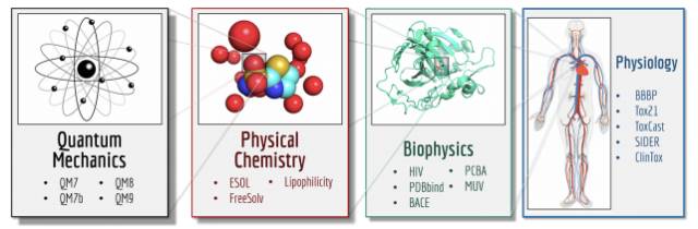 图 2:反映分子性质不同级别的不同数据集中的任务。