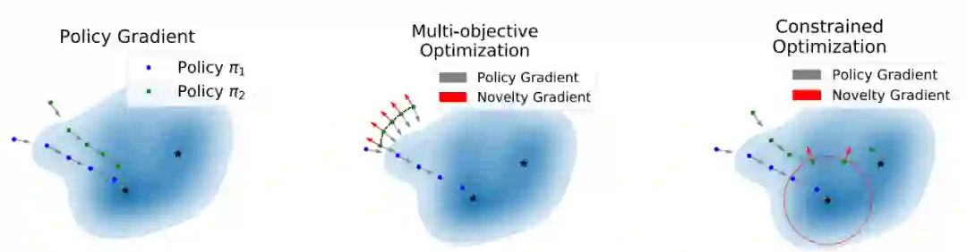 我们的改进主要基于约束优化:如果简单地将这个问题建模成多目标优化,那么这个 diversity reward 很容易喧宾夺主。为了保证在原始任务上的性能,我们提出通过约束优化的方式来进行求解。