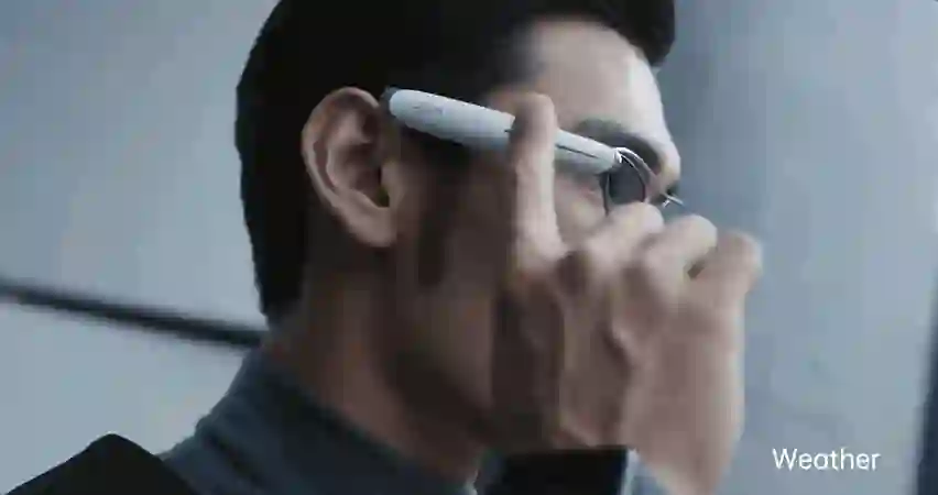 通过滑动或点击眼镜右侧,上述信息就能显示在视线感知大概1到2米的距离处。换句话说,这款眼镜会将平面2D信息投射在你的视野中。