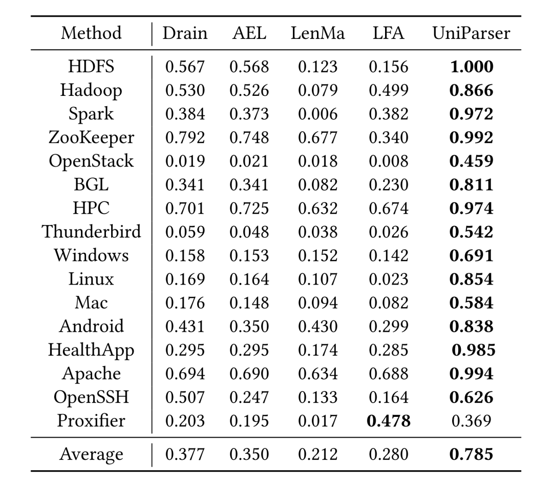 在本篇论文中,微软亚洲研究院的研究员们提出了 UniParser,用于捕获异构日志间的相似部分。Uniparser 利用 Token Encoder module 和 Context Encoder module 来学习日志单词(token)及单词上下文(context)的范式。Context Similarity module 用来表征日志范式的相似之处。研究员们在16个公开的日志数据集上进行了对比实验,UniParser 的精度大幅度超越了其他日志解析器。