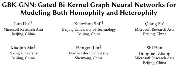 针对这个问题,微软亚洲研究院的研究员们通过实证分析发现,无论是在被普遍认为是同配图的数据集还是异配图的数据集上,都存在着相当数量的异配子图,且子图的异配度参差不齐,而传统模型如 GCN 在同配子图上往往表现优异,但在异配子图上发挥较差,这充分说明了能同时建模同配和异配性模型的必要性。研究员们通过理论分析了 GCN 不能有效建模混合了同配和异配性的图的原因,并进一步提出了一种基于双核特征转换和门(Gate)机制的新型 GNN 模型: GBK-GNN。GBK-GNN 的结构如图4所示,其通过两个不同的核分别捕获同质和异质信息,并引入门来进行核的选择。这种方式能避免特征变换后的聚合操作将可区分的特征平滑化,从而能够提高模型对同质性及异质性的建模能力。