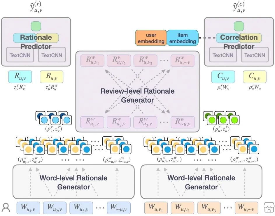 本文所提出的 R3(Recommendation via Review Rationalization)是一个期望从评论中剔除假性相关特征的模型,由因果特征挖掘模块、因果特征预测模块以及关联特征预测模块三个模块组成。其中,因果特征挖掘模块用以从评论特征全集中挖掘因果特征以减小假性关联特征的干扰;因果特征预测模块仅基于因果特征挖掘模块挖掘到的因果特征进行推荐预测;关联特征预测模块则同时基于因果特征和其余关联特征进行预测来验证原因特征挖掘模块挖掘到的因果特征是否能使其余关联特征与预测结果条件独立。通过在不同分布的数据集上的大量实验表明,R3 挖掘到的因果特征在保持高准确性推荐结果的同时也具有较高的泛化能力和解释能力。