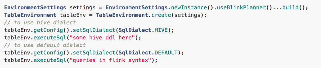 还可以通过Flink Table API的方式开启Hive Dialect:
