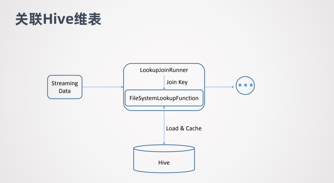 FileSystemLookupFunction是一个Table function,它会去跟底层的文件系统交互并加载Hive表,然后在Hive表中查询join key,判断哪些行数据是可以join的。