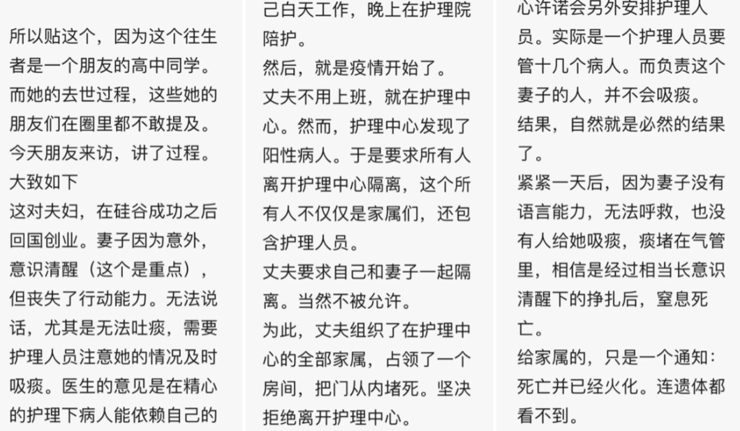 在这样一个大背景下,近日的一篇文章《上海疫情中,一位清华校友的非正常死亡》在朋友圈疯传。