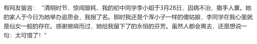 除了身边的人,李昶的初中同学也表达了追忆之情。