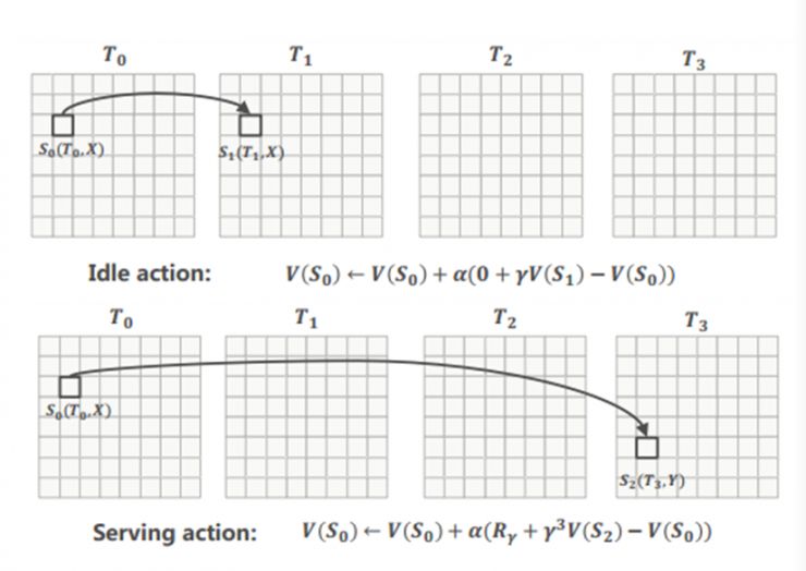 如何评估司机出现在某个特定时间/空间时的价值也成为一个核心问题。在强化学习中的价值函数表示了智能体 (Agent) 在某状态下的预期累积收益的期望。而在滴滴这一场景中,司机处在某状态下的价值函数,则对应了在常态状态下司机出现在某时空位置下的预期流水收入。