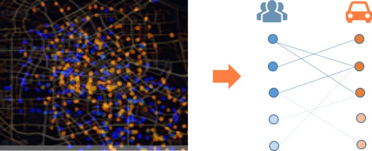 移动出行的本质是在乘客和司机之间建立连接。在滴滴,平台日订单达 3000 万,高峰期每分钟接收超过 6 万乘车需求,如何设计一个更高效的匹配算法来进行司机和乘客的撮合也成为非常核心的问题。