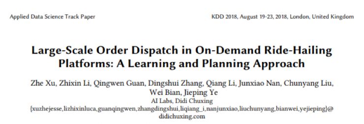 我们重点对滴滴 KDD 2018 Poster 论文《Learning to Estimate the Travel Time》进行了介绍,本文则是对滴滴 KDD 2018 Oral 论文《Large‑Scale Order Dispatch in On‑Demand Ride‑Hailing Platforms: A Learning and Planning Approach》的详细解读。