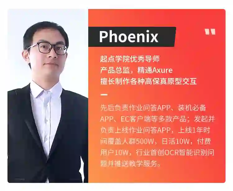 接下来~让我隆重请出我们的授课老师——Phoenix老师。Phoenix老师是一位很神奇的老师。教授了10000+的同学,0差评,100%好评!