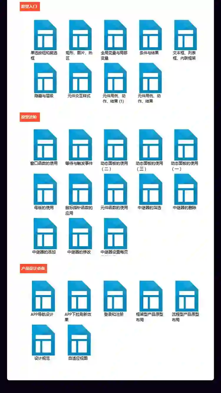 在产品工作中,我们会遇到多种原型使用,低保真、产品Demo、高保真原型等等,课程设置了Axure的进阶内容学习,帮助大家应对不同场景需求。