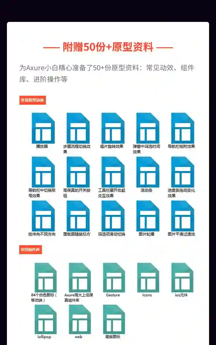 现在报名,除了赠送Axure9.0安装包,还将送50份+的原型资料!不要错过~