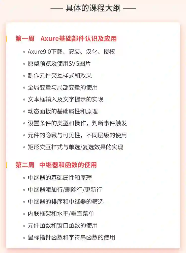 简单来说,是专门为产品经理打造的axure课程。不是一味的停留在工具使用上,而是结合产品经理日常工作内容来教授。