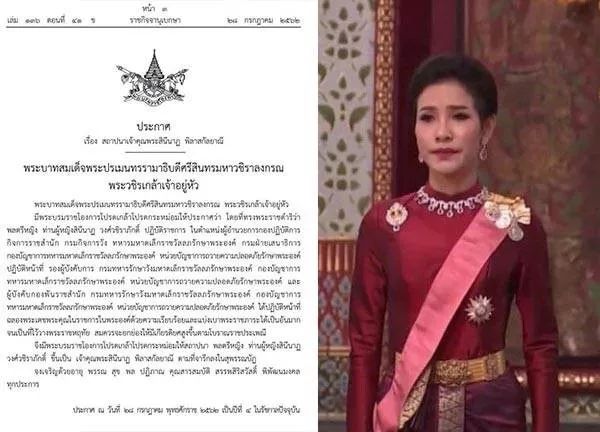 据路透社报道泰王下旨称,诗妮娜“对国王不忠”,而且“野心勃勃”,“不服从王后命令”,甚至想僭越王后的地位。旨令还说:诗妮娜“无法给国王带来荣耀,不理解王室传统,只顾着让自己获利”。