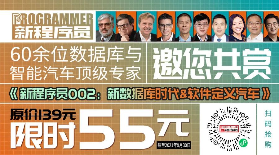 《新程序员002:新数据库时代&软件定义汽车》,由60余位专家倾力创作。随书附赠《2021数据库全景图V1.0》和《2021汽车技术与产业生态全景图V1.0》,同时内含《2021年度数据库发展研究报告》和《2021年度软件定义汽车研究报告》,图文与视频多媒体呈现。