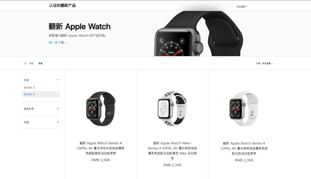 「翻新 Apple Watch Series 4 首次上架苹果官网」