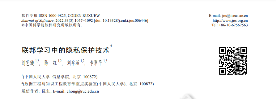 人大等《联邦学习隐私保护》隐私保护技术