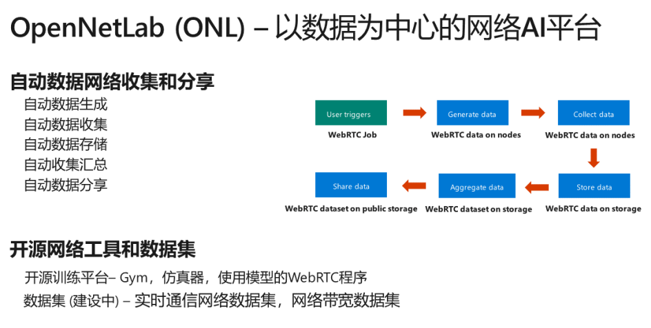 2020 年 12 月 18 日,微软亚洲研究院宣布联合多所亚洲地区高校成立 OpenNetLab 开放网络平台联盟,通过为研究人员提供通用的分布式网络测试平台以及真实的网络评测数据集,推动人工智能在网络研究中的应用与发展,构建健康、可持续的网络研究生态系统。