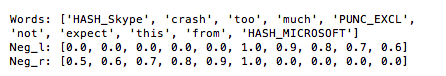 紧接着在否定词前后出现的单词是最具否定性的,而远离否定词的单词则不在其否定辖域之内。我们定义了左右否定性,表示当前单词取相反含义的可能性。左否定性取决于左侧最近的否定词,右否定性类似。图7给出了一条推文中各单词的左右否定性。