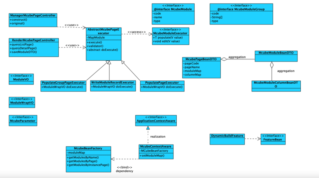 public class McubeContextAware implements ApplicationContextAware {private static volatile ApplicationContext alc;private ModuleBeanFactory moduleBeanFactory;private ModuleGroupBeanFactory moduleGroupBeanFactory;public void setApplicationContext(ApplicationContext applicationContext) throws BeansException {alc = applicationContext;}public void init(){setModuleBeanMap();setModuleGroupBeanMap();}private void setModuleBeanMap() {Map<String, McubeModuleExecutor> beanMap = alc.getBeansOfType(McubeModuleExecutor.class);if (beanMap != null) {beanMap.values().stream().forEach(m -> {McubeModule module = AnnotationUtils.findAnnotation(m.getClass(), McubeModule.class);if (module != null) {String code = module.code();String name = module.name();if (code != null) {moduleBeanFactory.getMcubeBeanMap().put(code, m);}}});}}private void setModuleGroupBeanMap() {Map<String, McubeModuleExecutor> beanMap = alc.getBeansOfType(McubeModuleExecutor.class);if (beanMap != null) {beanMap.values().stream().forEach(m -> {McubeModuleGroup module = AnnotationUtils.findAnnotation(m.getClass(), McubeModuleGroup.class);if (module != null) {String code = module.code();String name = module.name();moduleGroupBeanFactory.getMcubeBeanMap().put(code,m);}});}}}