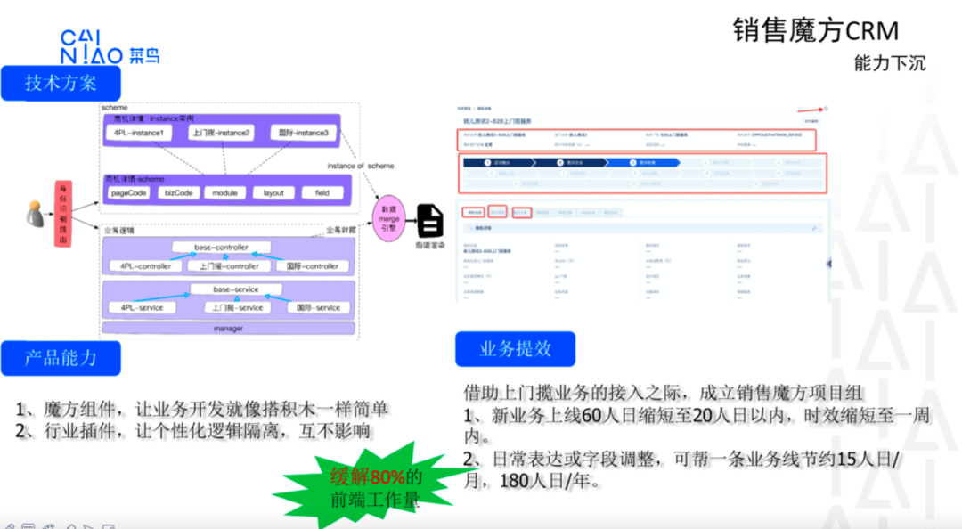 前端组件复用,在没有新前端组件,前端无需参与开发,后端只需编写module对应的业务接口。
