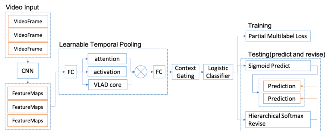 利用视频 Embedding 也可以进行视频标签预测。具体过程如下图: