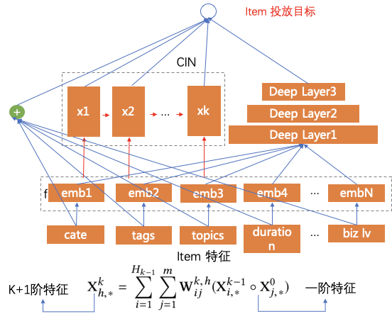 这里我们引入xDeepFm来解决,xDeepFm采用高阶复用低阶结果的方式,减少计算量。