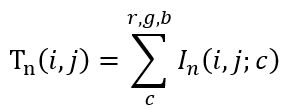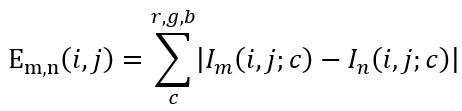设表示第 n 帧在点 (i, j) 上 c 通道()的值,那么两帧图像和在点 (i, j) 上的差异度定义为
