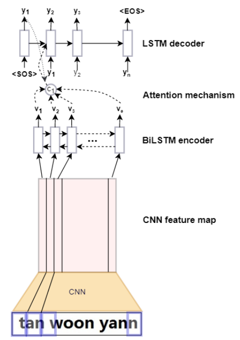 采用 Seq2Seq + Multi-head Attention 做文本识别,网络的整体结构图如下: