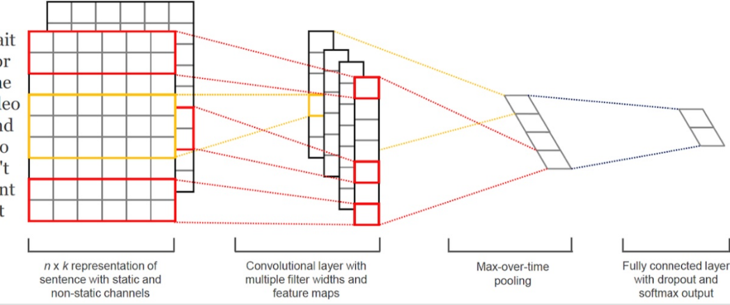 与LSTM相比,TextCNN使用了卷积 + 最大池化这两个在图像领域非常成功的组合,以训练速度快,效果好等优点一段时间内在工业界具有广泛的应用。其中每个卷积核在整个句子长度上滑动,得到n个激活值,然后最大池化层在每一个卷积核输出的特征值列向量取最大值来供后级分类器作为分类的依据。但同时池化层也丢失了结构信息,因此很难去发现文本中的转折关系等复杂模式。