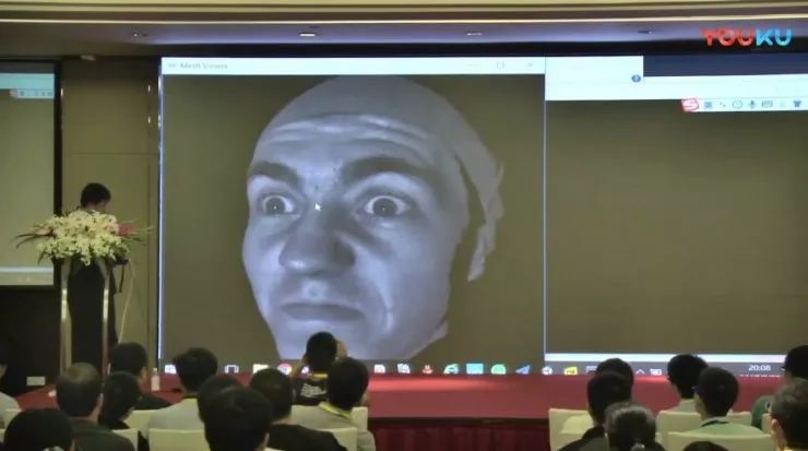 这些信息非常容易获得,但处理起来非常困难。我们可以看一些原始的数据。这是我的一个学生,我把他的三维脸部曲面扫描下来,可以分析他的表情,做动态的跟踪。