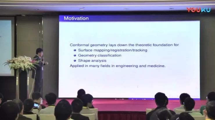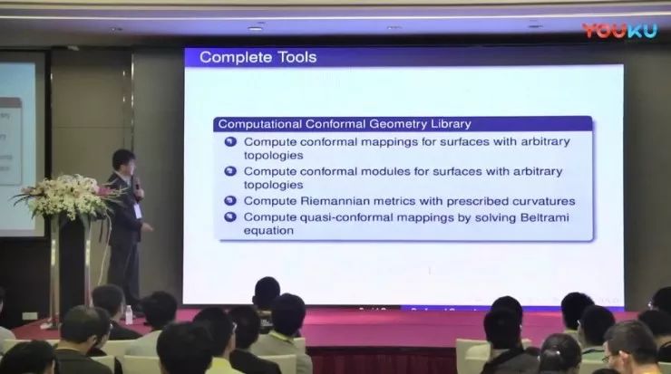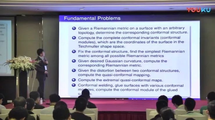 我们研究的重点是共形几何(Conformal Geometry),它是介于拓扑和黎曼几何之间,比拓扑要硬,比黎曼几何要软。