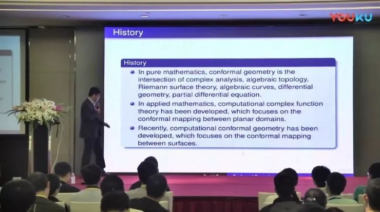 从历史上来说,共形几何是多个领域的交叉点。大家都学过复变函数,学过保角变换,可能大家也学过代数拓扑、代数几何、代数曲线,特别是微分几何和偏微分方程PDE,共形几何是这些数学分支的交叉点。