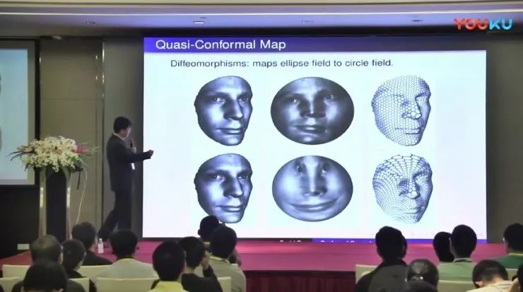 曲面之间的映射,比如有两个医学图像、两三个器官的表面成像如何进行配准注册;如果有个动态变化的曲面,比如心脏在跳动,如何做跟踪;或者人脸各种各样表情变化如何做跟踪。这类问题适合用共形几何的理论来处理