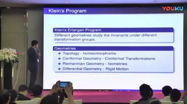 我们知道在几何上有个埃尔朗根 (Erlangen) 纲领,它是说不同几何研究不同变换群下的不变量。