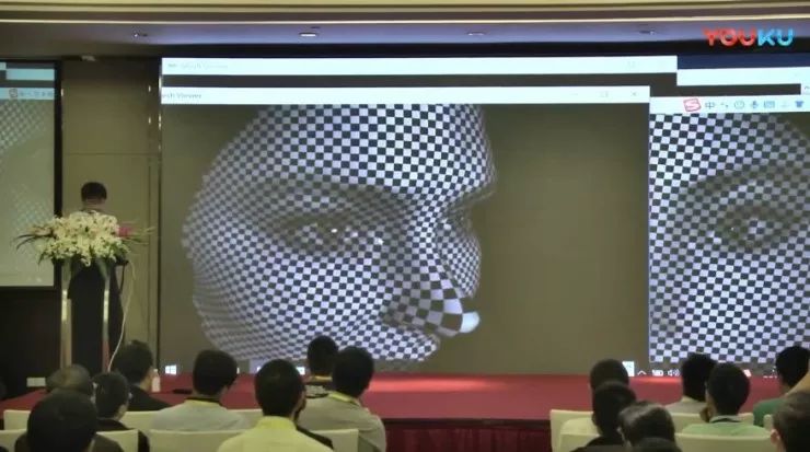 这里看一个demo。这是一张通过扫描得到的三维人脸,通过黎曼映照投到平面上来。我们在平面上放了许多无穷小圆作为它的纹理,拉到三维曲面上以后还是无穷小圆。它的局部保持形状不变,圆形映射成圆形。