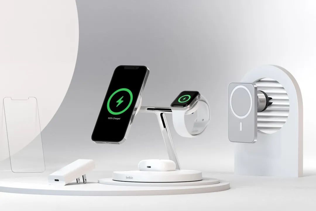 目前国外的Belkin和Otterbox均已获得MFM认证,其中Belkin推出了MagSafe 车载支架和MagSafe三合一无线充电座,而Otterbox也带来了一系列MagSafe保护壳,在可预见的未来,带有MagSafe标识的iPhone 12配件会愈来愈多。