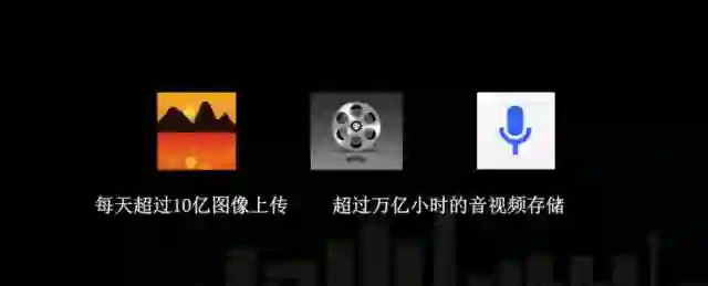后来我们发现每天用户上传的数据非常多,每天用户上传的图像超过 10 亿张,有超过万亿小时的视频在云存储上。我们存储了海量的内容,大部分的存储数据都是图像、视频和音频。