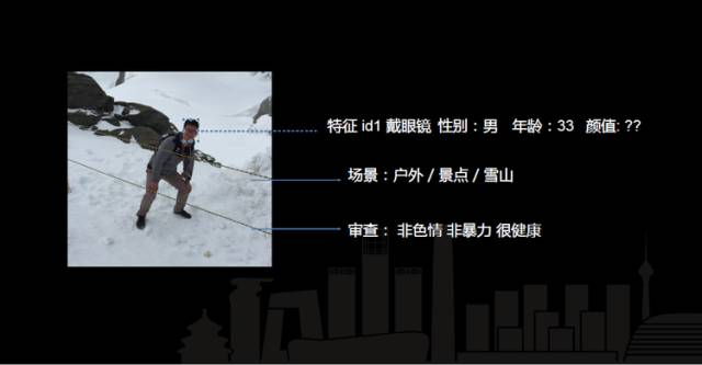 第二个是识别图片具体内容的项目,就是人脸识别。需要对人脸提取特征,然后对大量的图片进行人脸聚类。比如说标注它是 id1 类的人,可以做一些特征的分类,像戴不戴眼镜、年龄、性别、颜值。后面就是场景识别,场景识别现在支持 300 多类场景的识别。户外的场景识别准确率非常高,室内会有很多误判,比如说教室和办公室等等。因为如果学习一个单一任务,可能会有疏漏,比如如果一张图片里有学生,场景是教室的概率就会非常高,成为 Office 的概率就会非常低。现在基本的分类算法,如果要提升背景的准确率,图像里面的人物内容都要结合学习。