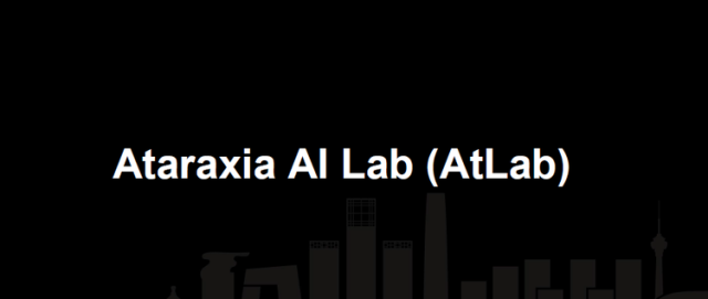 图中是我们去年成立的实验室 Ataraxia AI Lab。这个名称来源于一个古希腊的哲学学派,这个学派是个怀疑论的,Ataraxia 是指人对世界的认知是有缺陷的,你永远不可能了解事物的本质,就像我刚才提出来智能这个问题,其实每一个阶段都有人提出智能的含义,图灵认为智能能用机器制作出来,后面有希尔乐等等人反驳了他,其实智能这些东西跟用机器模仿出来的东西完全不一样。